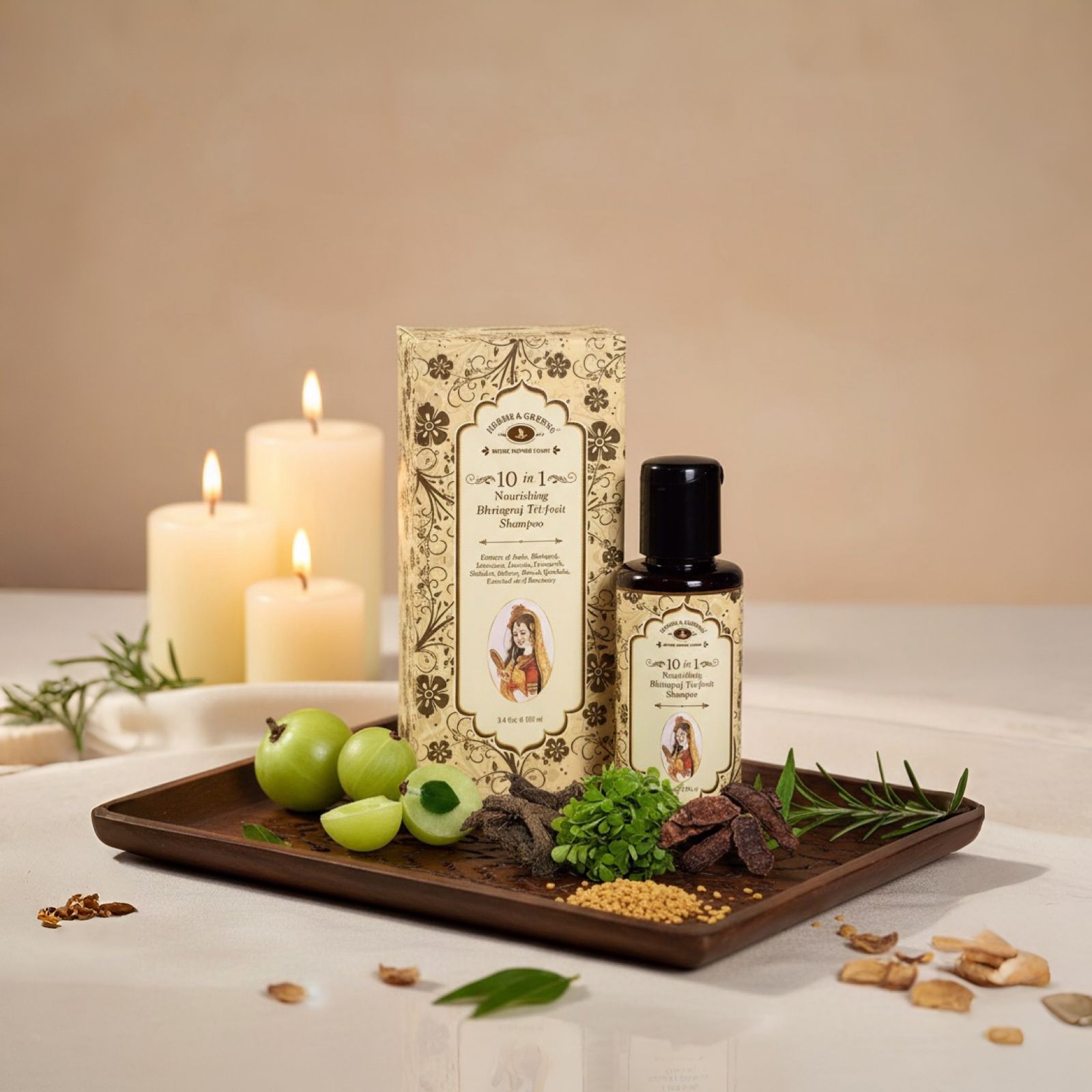 Fortified with 10 precious ayurvedic herbs & essential oils, this SLS/Paraben free formulation gives superlative hair cleansing experience. Hair cleansers like Amla, Harad, Bahera and Shikakai, Jatamansi, Fenugreek, Triphala, Brahmi, Rosemary & Licorice fight premature greying, hair fall and dandruff. Herbs like Bhringraj, Fenugreek, Jatamansi and Licorice are known for their scalp stimulating & hair friendly properties. Tri Fruit or Triphala is a traditional herbal blend which comprises of 3 herbs-Amalaki, Haritaki & Vibhitaki, as they are called in Sanskrit. Amla ensures healthy and lustorous hair. Vibhitaki and Haritaki are second to none in improving your hair quality. They contribute to stronger hair roots, low hair fall and reduced premature greying.