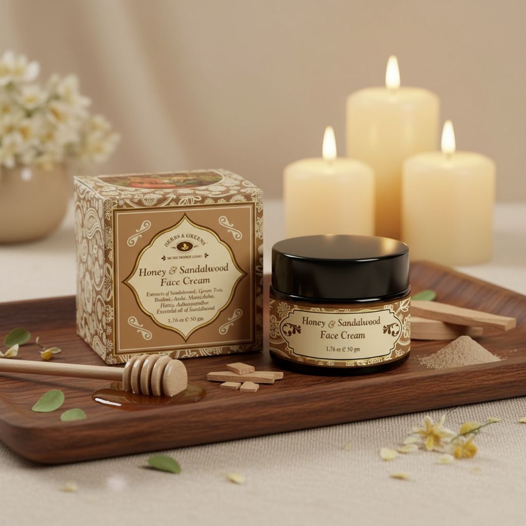 This luxury cream nourishes your skin and makes you look fresh round the clock. Regular use restores and maintains the natural beauty. Fortified with precious Sandalwood extracts that works magic on dry skin & the results are amazing. The presence of Honey in this cream imparts natural hydration & anti aging. Everyday stress and pollution wreck havoc on our skin. The extracts of Amla, Green Tea, Ashwagandha (Indian Ginseng) and Manjishtha ensure that the effect of every day stress doesn’t last long on your skin. Promotes firmness and elasticity of the skin, Brightens up dull complexions leaving your skin revitalized and protected. Leaves the skin supple with a very pleasant light natural aroma.